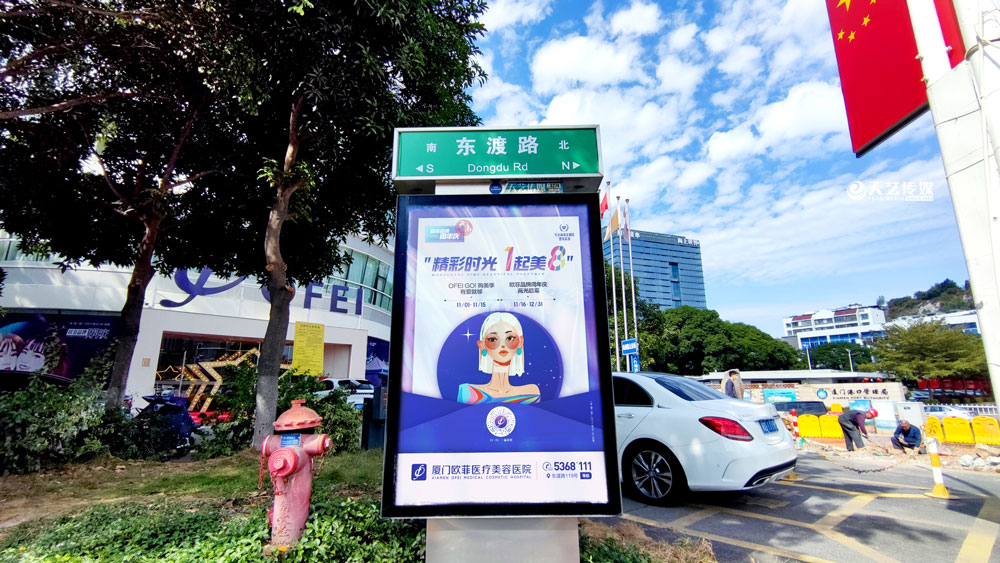 值此歐菲品牌周年慶之際,歐菲品牌在廈門島內(nèi)各個黃金路段(仙岳路、嘉禾路、湖濱南路、鷺江道、環(huán)島干道、東渡路等)投放超過400座城市路名牌和200座社區(qū)快遞柜媒體(集中在中高端人群住宅區(qū)、居住率較為密集的生活居住區(qū))。